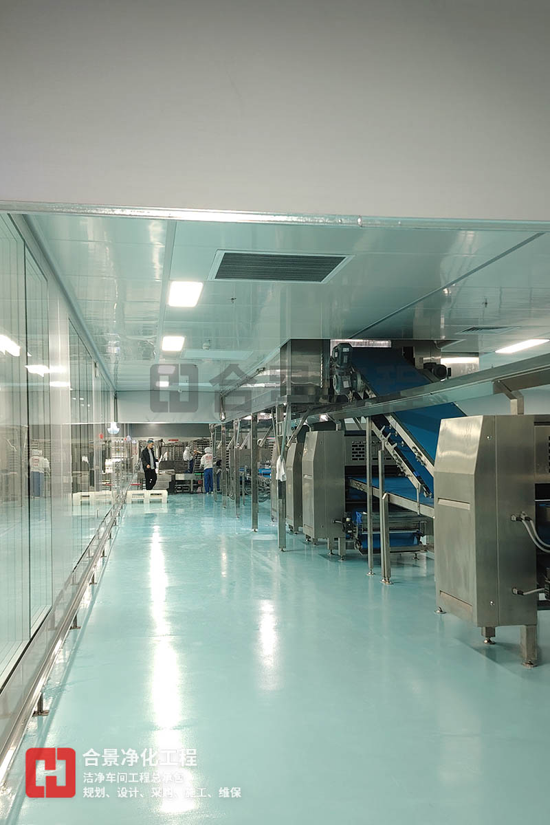 根據(jù)生產(chǎn)工藝特性,將食品廠凈化車間劃分為不同潔凈區(qū)域(如30萬級(jí)、10萬級(jí)、萬級(jí))。通過壓差梯度實(shí)現(xiàn)氣流定向流動(dòng):清潔區(qū)與非清潔區(qū)保持≥10Pa正壓差;高風(fēng)險(xiǎn)操作區(qū)形成相對(duì)正壓核心區(qū);物料傳遞口設(shè)置雙扉連鎖氣閘裝置;人員通道采用風(fēng)淋室與緩沖間雙重隔離。